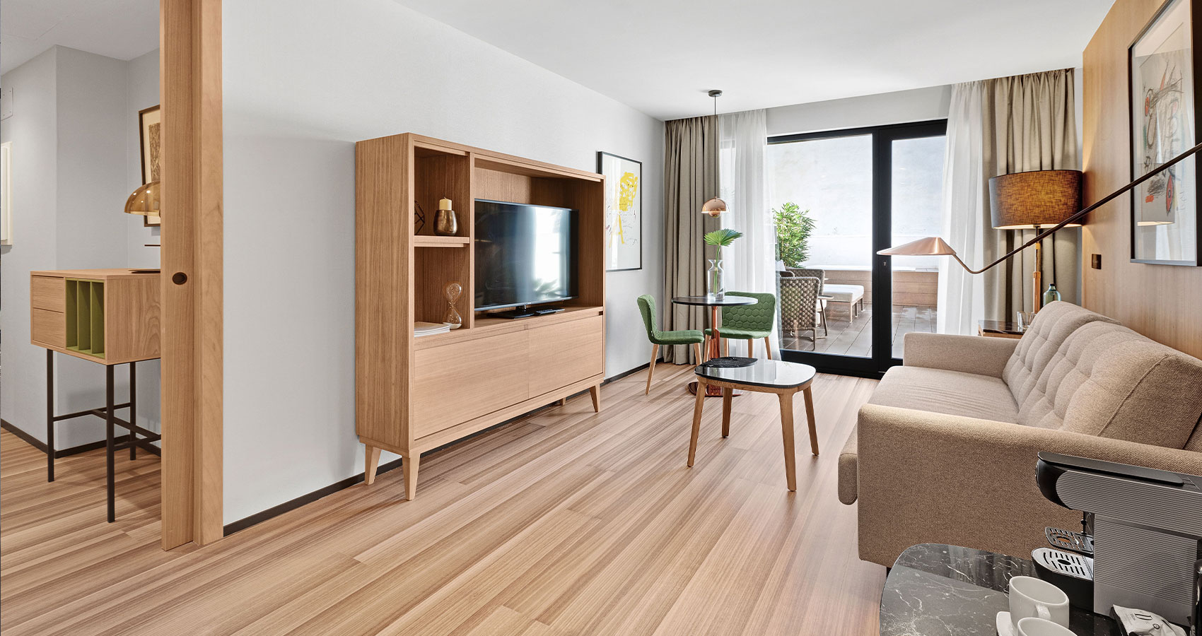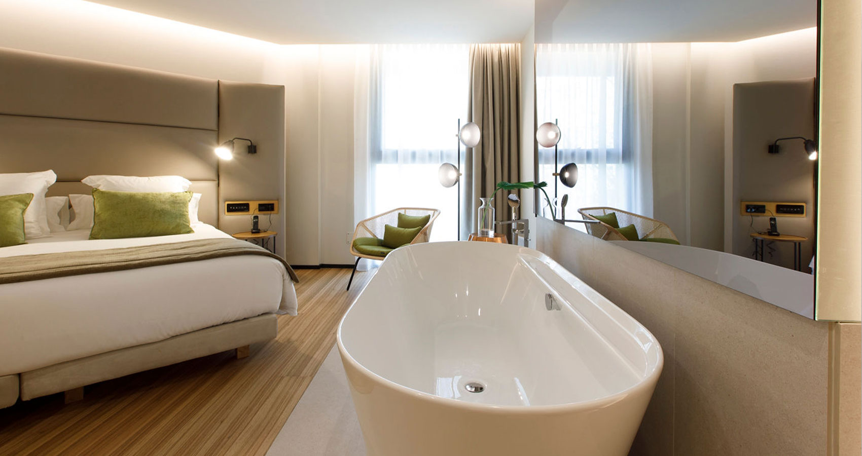 Equipación: Enchufes USB carga teléfonos y cargador inalámbrico para teléfonos / Aire acondicionado-calefacción / Armarios / Caja fuerte gratuita / Escritorio / Teléfono / Minibar-nevera y hervidor.